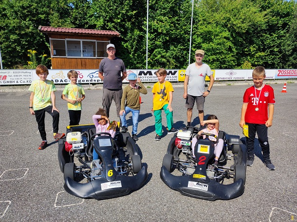 Wer anfangs noch kleine Probleme mit dem Sportgerät hatte, wurde von den beiden Übungsleitern einfühlsam mit dem Kart vertraut gemacht. Je länger die Slalomfahrt mit dem Kart dauerte, umso besser kamen die Kinder mit dem Fahrzeug zurecht. Die Kinder fassten Vertrauen in das Fahrzeug und konnten den vorbereiteten Slalomkurs sicher und fehlerfrei absolvieren.