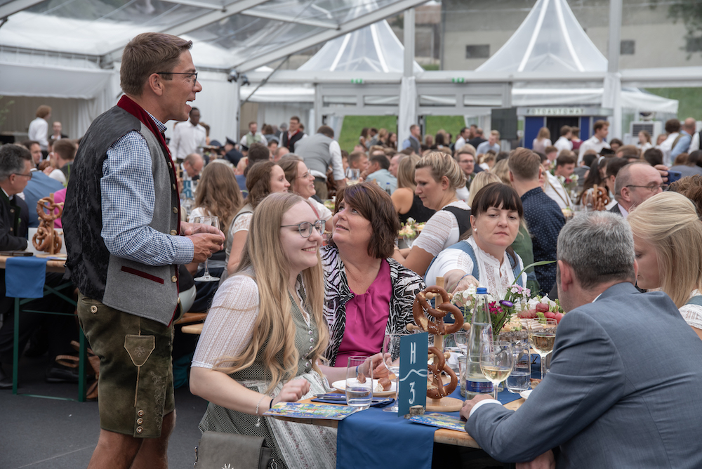 Rund 50 auf 100 Meter maß die gesamte Infrastruktur rund um das Festzelt, welches anlässlich des 135-jährigen Bestehens von MEGGLE auf dem Werksgelände in Wasserburg aufgestellt wurde. Das Ehepaar Meggle hatte persönlich mit großem Aufwand das Fest geplant, das gemeinsam mit den Mitarbeitern und langjährigen Weggefährten am gestrigen Freitag begangen wurde. Auch viele MEGGLE-Führungskräfte aus der ganzen Welt machten sich nach fast drei Jahren wieder auf dem Weg zum Firmensitz der MEGGLE Group GmbH.
