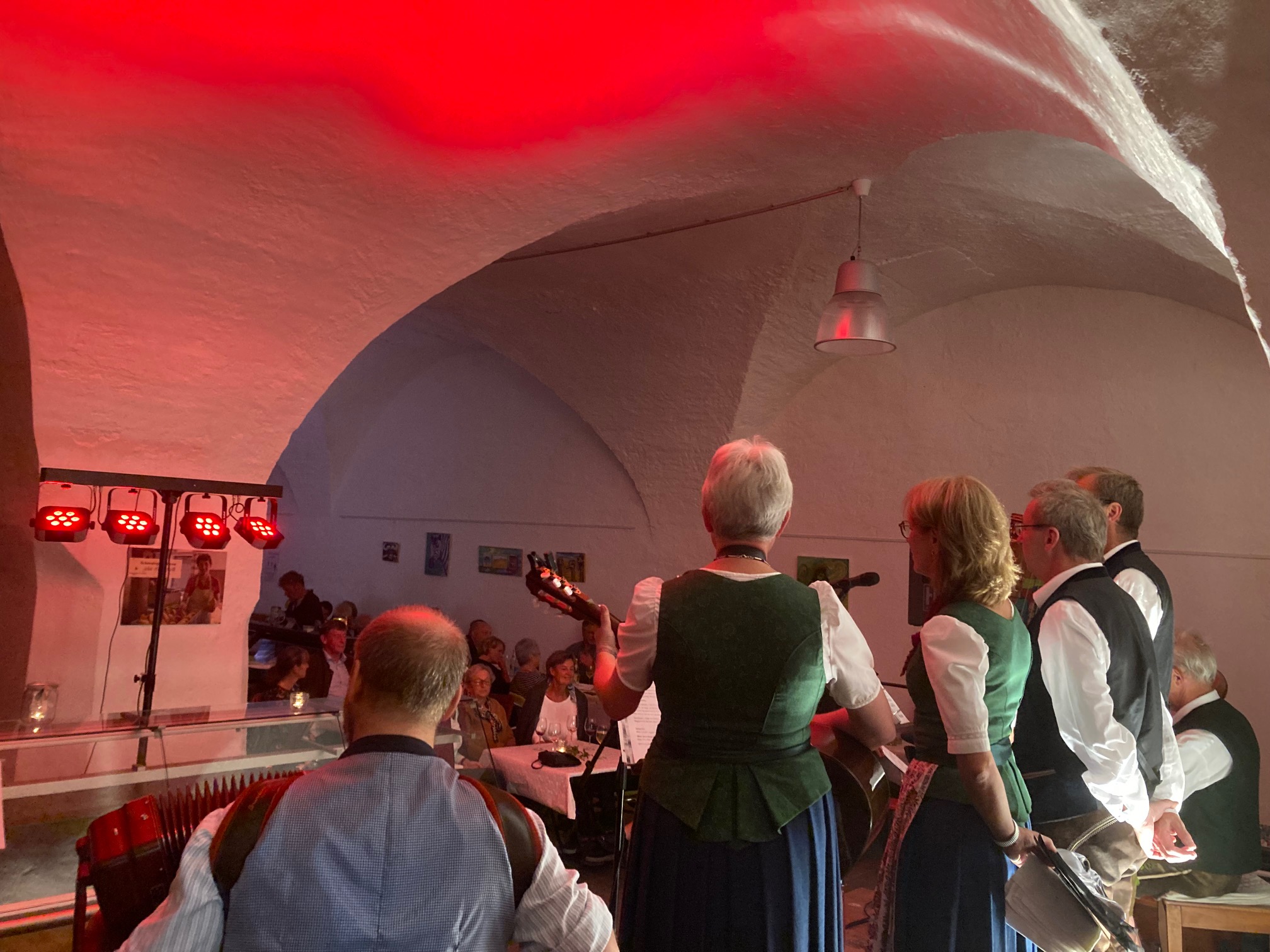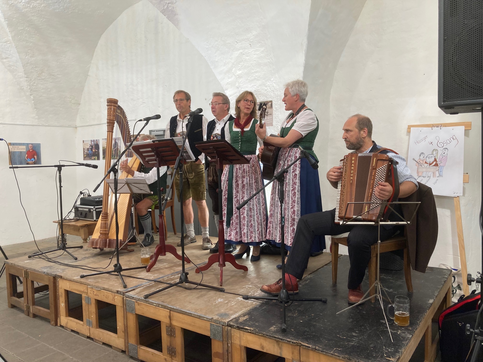 Mit bayerischen Liedern mit humorvollen Texten gestalteten sie ihr Programm, haben die Haager Geschichte musikalisch vertont und sogar ein Lied für den Bauernmarkt geschrieben. In diesem selbstgetexteten Überraschungsstück besang der Haager Viergesang mit einem Augenzwinkern das kalte Gewölbe und „bei der Parkerei vergeht’s da glei“, allerdings hoben sie genauso die frische Ware, die menschennahe Atmosphäre und die engagierten Erzeuger hervor.