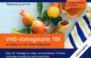 Eröffnung des Vortragsprogramm bei der VHS Wasserburg verschoben - Vortragskarte zum Vorzugspreis
