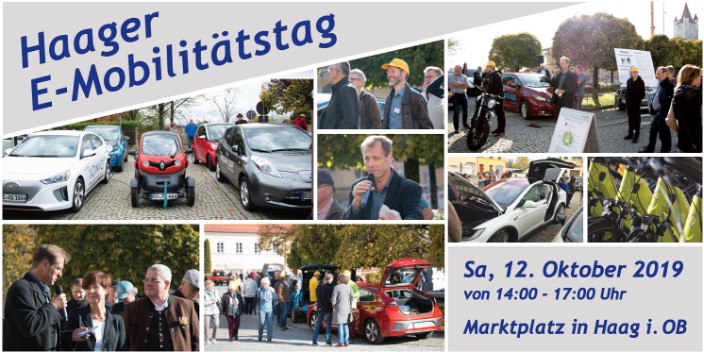 Am Sonntag, 18. September, findet auf dem Bräuhausplatz von 12 bis 17 Uhr der Haager E-Mobilitätstag statt. Auf dem Programm stehen Kurzvorträge und Interviews zu E-Mobilität und Energiewende, Informationen zu E-Fahrzeugen und Erneuerbaren Energien. Außerdem berichten E-Fahrzeugbesitzer über ihre eigenen praktischen Erfahrungen. Verschiedene Fahrzeugtypen können begutachtet und besichtigt werden. An diesem Tag ist sonst auch noch jede Menge los in Haag: