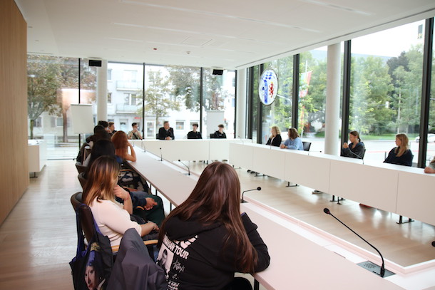 Bei einer lockeren Diskussionsrunde zeigten sich die Jugendlichen sehr interessiert an den Themen, die die Region um Rosenheim und den Landkreis im Speziellen betreffen: Tourismus, Wohnungsmarkt, Vereinbarkeit von Familie und Beruf – das sind nur einige Beispiele der Themenfelder. Bei einer bayerischen Brotzeit blieb im Anschluss noch Zeit für tiefergehende Gespräche, bevor es für die Neunt- und Zehntklässler wieder zurück in ihre rumänische Heimat ging.