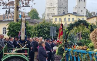 Auch Landrat Max Heimerl zu Gast: Viele Vereinsgruppen und Fahnenabordnungen feierten Erntedank - Schöner Kirchenzug zum Festplatz