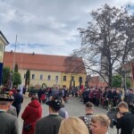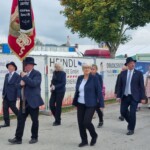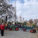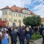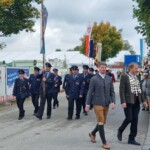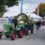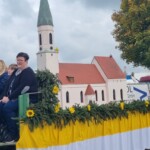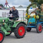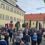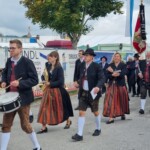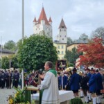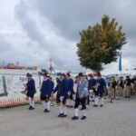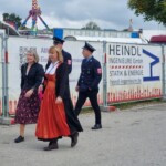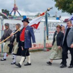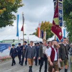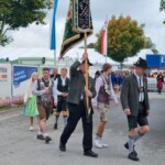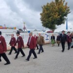 Nach dem Gottesdienst gab es einen Kirchenzug zum Festplatz. Das Interesse der Bürgerinnen und Bürger entlang der Straßen war diesmal nicht besonders groß. Zwei Tage zuvor beim Festzug anlässlich des Herbstfest-Starts winkten und klatschten die Interessierten noch sehr zahlreich vom Straßenrand aus.