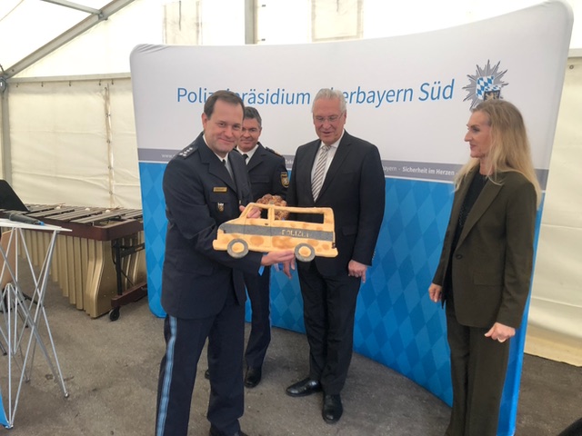 Danach hielt der Bayerische Innenminister Joachim Hermann seine Ansprache. Er hob anfänglich hervor, dass er bei seinem Besuch in Wasserburg 2013 erschrocken gewesen sei, weil die Polizeiinspektion in einem alten Gebäude untergebracht war, dass schon damals nicht mehr für die notwendigen Aufgaben einer Polizeiinspektion der optimale Standort gewesen sei. 2017 habe man mit dem Neubau begonnen und 6,4 Millionen Euro in diese Polizeiinspektion investiert. Das Ergebnis könne sich sehen lassen, betonte Hermann und er betonte auch angesichts der derzeitigen Kostenentwicklung: „Seien wir froh, dass wir es rechtzeitig angepackt haben.“