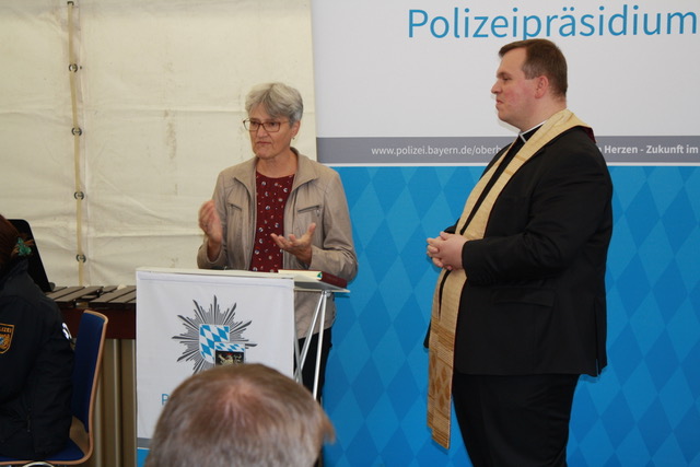 Zum Abschluss seiner Ansprache bedankte er sich ausdrücklich bei Doris Lackerbauer, der Leiterin des Staatlichen Bauamtes Rosenheim, bei „allen Männern und Frauen, die aktiv an diesem Bau mitgewirkt“ hätten und wünschte der Polizeiinspektion Wasserburg eine erfolgreiche Arbeit in den neuen Räumen. Er schloss seine Rede den besten Wünschen für eine stabile Gesundheit und Gottes Segen und „dass die Polizei von allen Einsätzen gesund zurück kommt.“