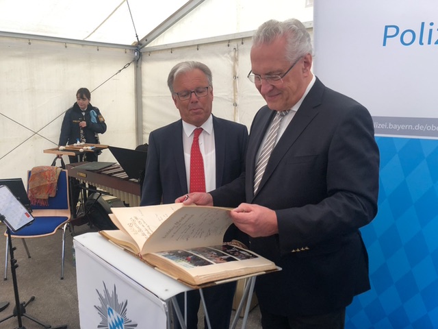 Beendet wurde die Einweihungsfeier durch das gemeinsame Absingen der Bayernhymne und der deutschen Nationalhymne. Im Anschluss trug sich Minister Hermann in das Goldene Buch der Stadt Wasserburg ein, bevor man sich durch das neue Dienstgebäude führen ließ.