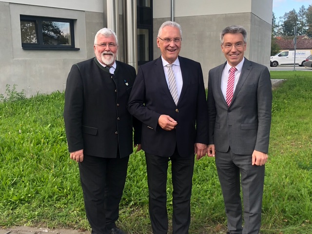 Bezirksrat Sebastian Friesinger (links) und Landrat Otto Lederer an der Seite des Ministers.