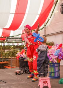 Bunte Farben trotz trübem Wetter. Der Kindertag auf dem Haager Herbstfest kam bei den Familien in der Region gut an. Zauberclown Manuela sorgte für viele Lacher und brachte Luftballon-Blumen mit. So manch kleiner Besucher hatte sich wind- und wetterfest eingepackt. Das Kinderschminken wurde ebenso gerne genutzt wie auch die Spielstationen. Auch an der Hüpfburg tobten sich die Kids aus. Das große Festzelt wurde kurzerhand zum Spielplatz umfunktioniert, bevor es gegen Abend wieder an die Vorbereitungen fürs spätere Musikprogramm ging.