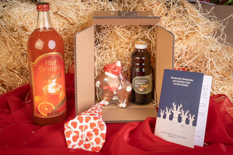„Uns ist es ein Anliegen, regionale und hochwertige Produkte anzubieten. Gerne werden individuelle Pakete ganz nach Kundenwunsch geschnürt. Und ein persönlicher Tipp: unsere selbstgebrannten Mandel sind mein absolutes Highlight. So wird Weihnachten gewiss zu einer wahren Freunde, so Monika Beer von der „Straßenmeisterei“.