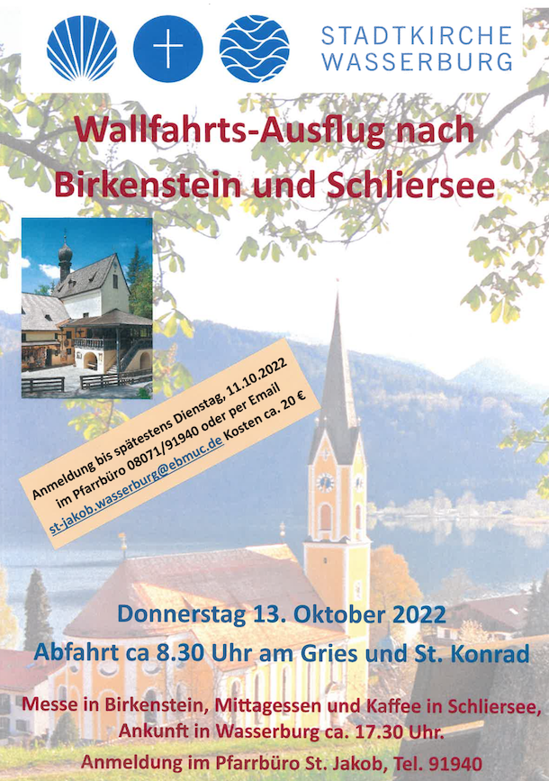 Kosten für die Busfahrt: Zirka 20 euro. Anmeldung bitte bis spätestens 11. Oktober im Pfarrbüro St. Jakob, Telefon 08071/91940 oder per Email st-jakob.wasserburg@ebmuc.de.