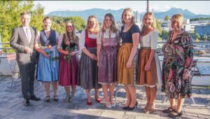 Auf dem Bild zu sehen: Die erfolgreichen Staatspreisträgerinnen (v.l.n.r.) Christina Fritz, Marina Huber, Theresa Huber, Hanna Dinner, Magdalena Hanslmaier und Theresa Friedrich (leider nicht auf dem Bild: David Welser) mit Landrat Otto Lederer (li.) und RoMed-Pflegedirektorin Judith Hantl-Merget (re.)