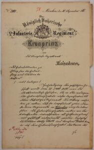 Schreiben des 2. Infanterieregimentes an das Bezirksamt Wasserburg zum Haberfeldtreiben in Edling – Einberufung von Soldaten, 1865.