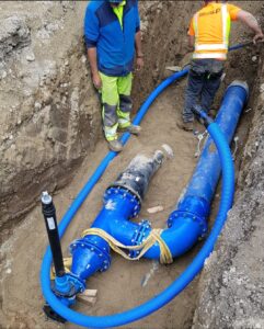 So beinhalte die Liste unter anderem den Austausch von energieintensiven Pumpen in einem Hochbehälter, die Erneuerung von Wasserleitungen im Zuge von Straßenbaumaßnahmen (auf dem Foto zu sehen), die Erschließung eines Neubaugebiets oder auch Bohrungen für Grundwassermessstellen eines künftigen Wasserschutzgebiets.