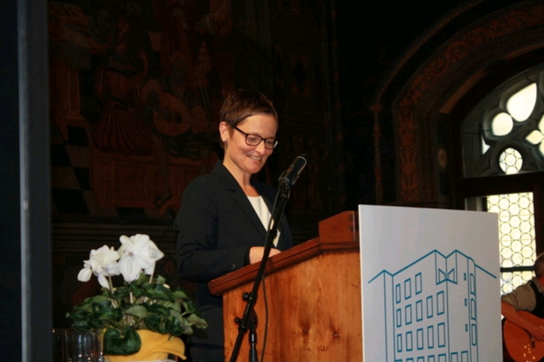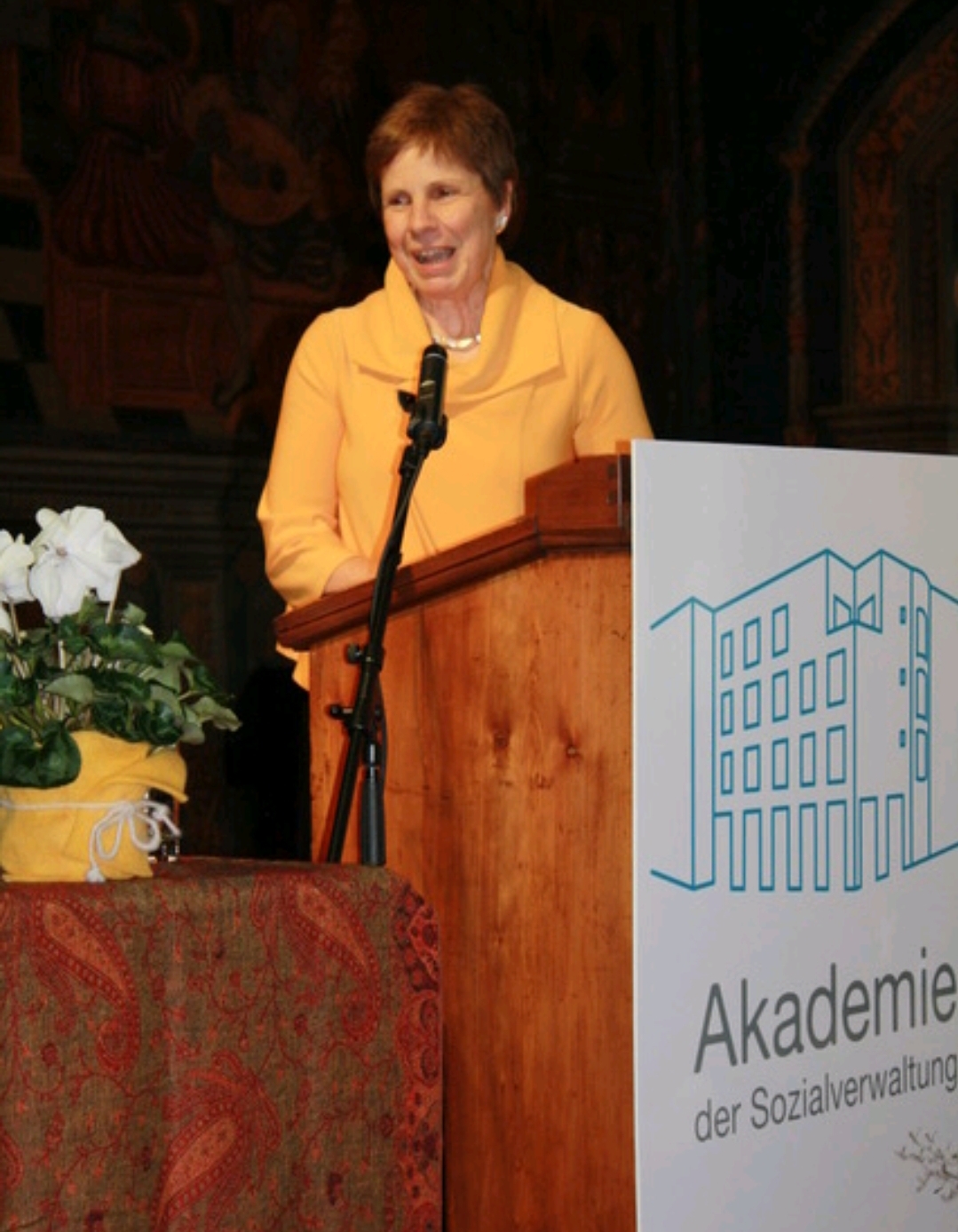 Die Leiterin der Akademie der Sozialverwaltung, Brigitte Schulan, begrüßte die Gäste im gut gefüllten Rathaussaal und verglich die Ausbildung von Menschen mit dem Bauen oder Gärtnern.