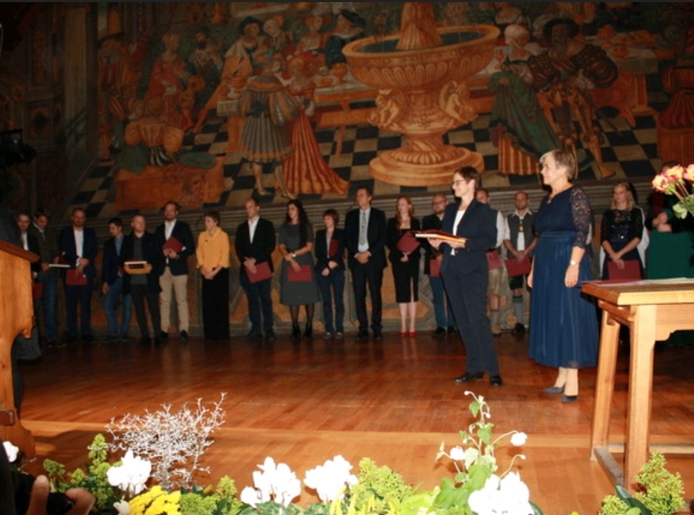 Die Corona-Pandemie habe viele neue, große Herausforderungen mit sich gebracht. Aber sie lobte auch die Weitsicht der Absolventen, denn ein leistungsfähiger öffentlicher Dienst, der, wie bei uns, großes Ansehen genieße, sei eben auch Gold wert. Und sie betonte, dass es die künftigen Mitarbeiter der Ministerien und Gerichte sein werden, die das Anlitz des öffentlichen Dienstes auch prägten, denn so betonte sie ausdrücklich, Bildung sei bei der Bewältigung des demographischen Wandels ein Schlüsselelement.