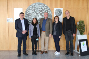 Freuen sich über eine gelungene Auftaktveranstaltung – von links: Karl Bosch (zertifizierter Coach, Mediator und Vereinsberater), Giulia Giardina (Ehrenamtskoordinatorin des Landkreises Rosenheim), Michael Blatz (zertifizierter Coach, Mediator und Vereinsberater), Marianne Loferer (stellvertretende Landrätin) und Dr. Thomas Röbke (Geschäftsführer des Landesnetzwerks Bürgerschaftliches Engagement Bayern)