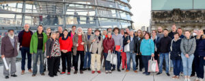 Aus dem Raum Rosenheim und ganz Bayern kamen jetzt Bürger auf Einladung des Bundestagsabgeordneten Ates Gürpinar (im Bild vorne 7. von rechts) von der Linken-Partei nach Berlin. Dreimal im Jahr können Abgeordnete bis zu 50 Personen nach Berlin einladen, um ihnen Parlament und die Hauptstadt selbst näherzubringen, aber auch um einen nahen Dialog zu konkreten Punkten zu ermöglichen.
