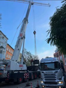 Ein Stück normales Stadtbild ist wieder gegeben. Viele Passanten beäugten am Dienstagvormittag den Abtransport und zeigten sich überrascht, in welchen Arbeitsschritten ein so großes Gerät demontiert werden kann.