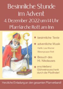 Am Sonntag-Nachmittag eine „besinnliche Stunde im Advent“ mit Lisa Kinzner an der Harfe sowie den Rotter Bläsern