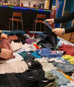Vor der Veranstaltung sortierten die Mitarbeiterinnen des Jugendtreffs die Kleidungsstücke und präsentierten diese.