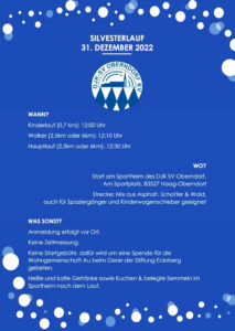 Der Kinderlauf (0,7 km) startet am letzten Tag des Jahres 2022 – dem Samstag, 31. Dezember – um 12 Uhr, die Walker (2,5km oder 6km) machen sich um 12.10 Uhr auf den Weg.