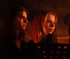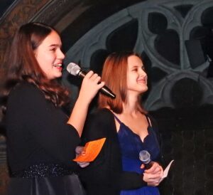 Sie machten ihre Sache ebenfalls bestens – im Duett: Die beiden Moderatorinnen des Weihnachtskonzertes 2022 – Pauli Gaßner (links) und Emily Schürer. Charmant führten sie das zahlreich erschienene Publikum durchs Programm, das ein wahrer Ensemble-Lichterglanz wurde, war doch das letzte Weihnachtskonzert der Schule nun schon drei Jahre her wegen Corona.