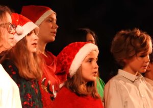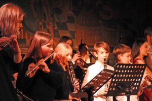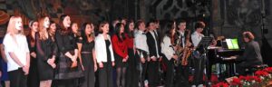 … sorgte schließlich die Jazzband des Wasserburger Gymnasiums für den krönenden Abschluss. Wie oben bereits geschrieben mit Jana Schimmel als Gesangs-Solistin und mit Stücken wie Street Life und Salsa. Um eine Zugabe kam das große Ensemble nicht herum, bevor gemeinsam mit dem Publikum noch ein Weihnachtslied angestimmt wurde:
