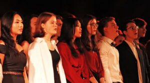 Dann der Auftritt des Lehrerchors. Auch hier war die Freude groß, dass es ihn überhaupt wieder gab – und die Darbietungen ernteten begeisterten Applaus: Komm, o komm, Emanuel und Virgin Mary – dirigiert von Ernst Hofmann, der für den kurzfristig erkrankten Kollegen Kleinschwärzer eingesprungen war.