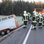 Der Anhänger, ein Viehtransporter mit vier Kälber an Board, überschlug sich nicht. Die Kälber konnten gerettet werden. Auch sie kamen mit dem Schrecken davon.