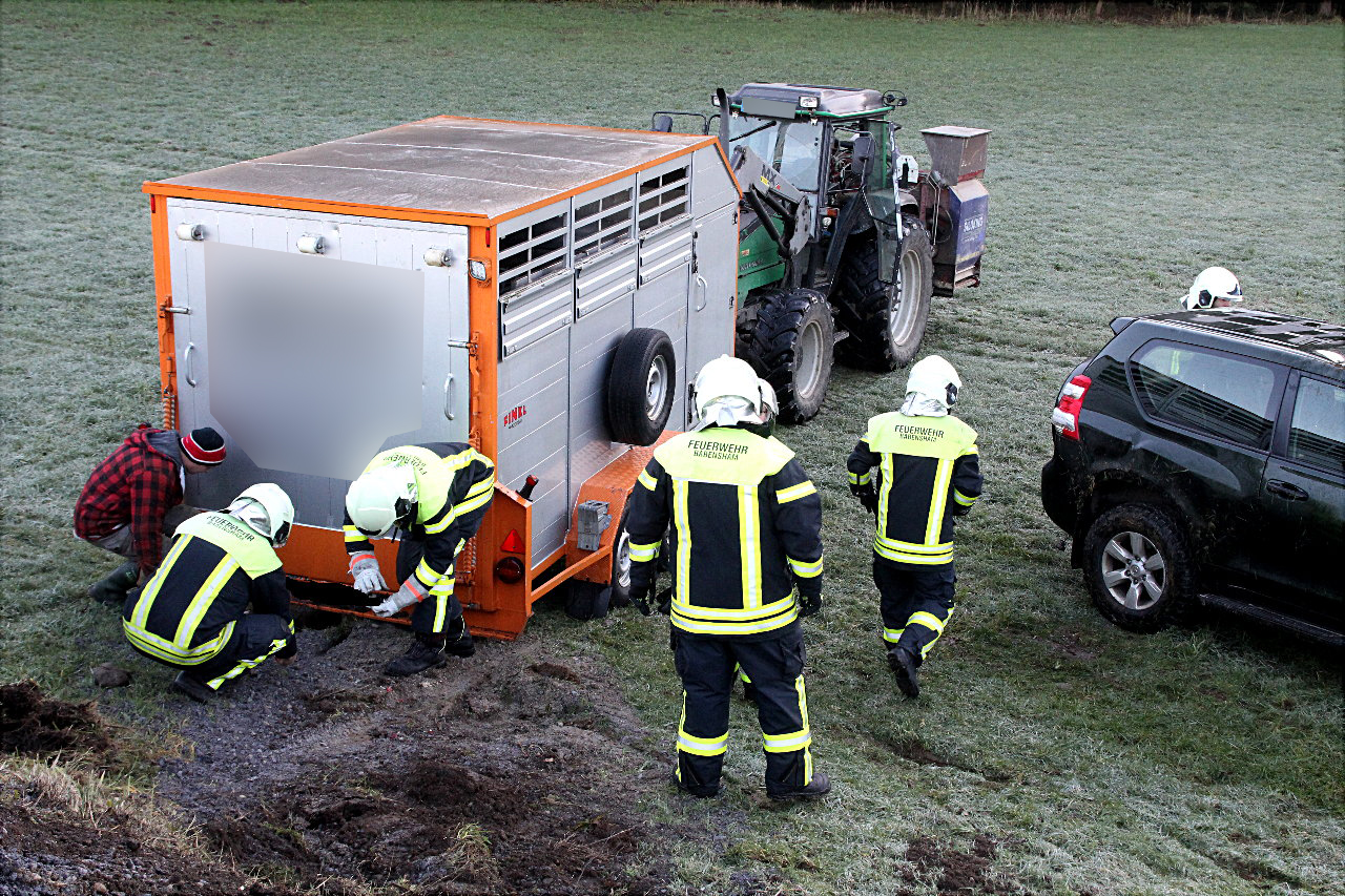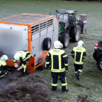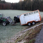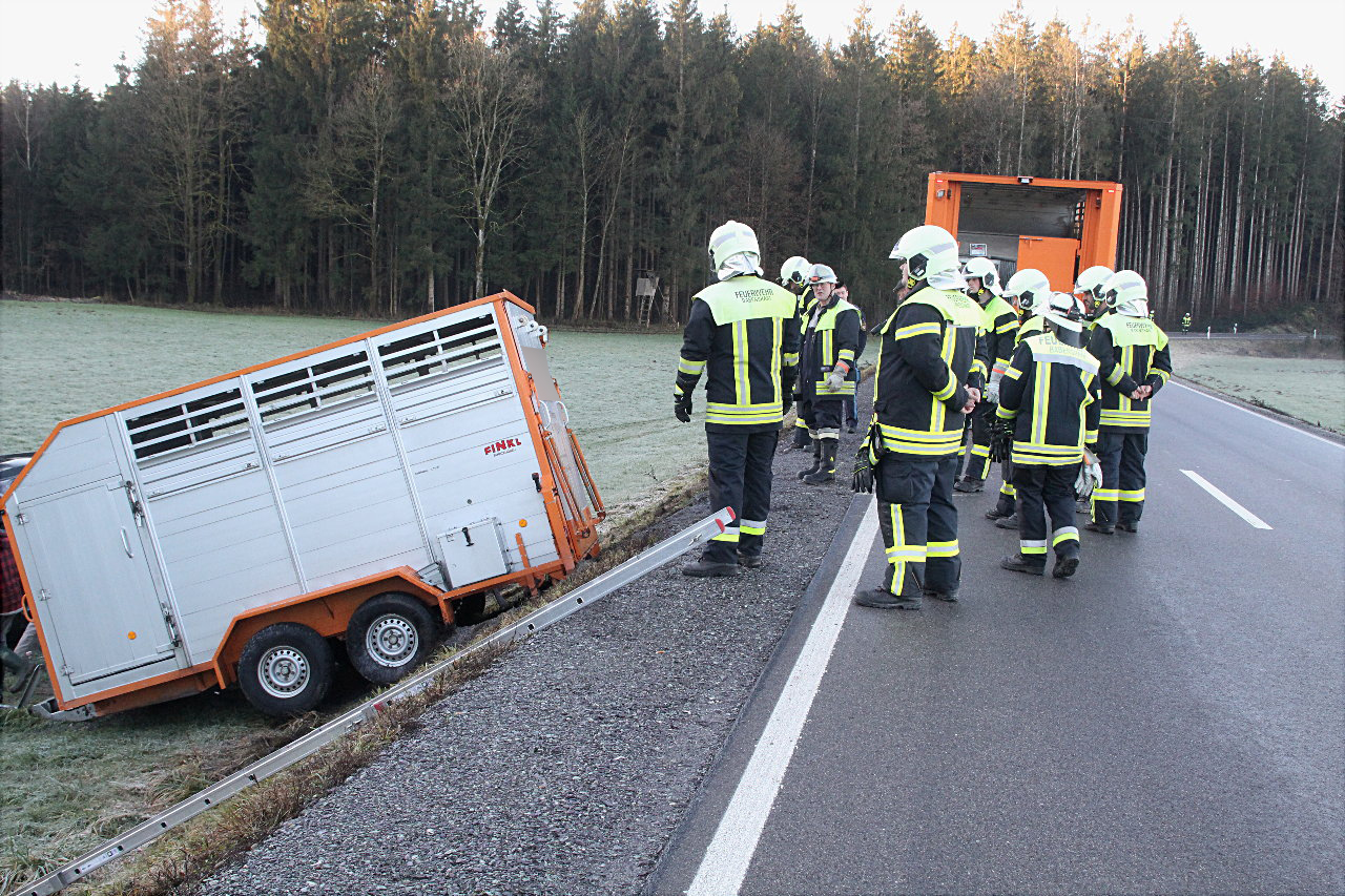 Der Anhänger, ein Viehtransporter mit vier Kälber an Board, überschlug sich nicht. Die Kälber konnten gerettet werden. Auch sie kamen mit dem Schrecken davon.