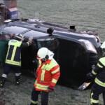 Montag, 8.30 Uhr: Alarm für die Feuerwehr Babensham. Die Floriansjünger rückten auf die Staatsstraße 2357 zwischen der B304 und Schnaitsee aus. Dort war ein Pkw mit Anhänger auf spiegelglatter Fahrbahn von der Straße abgekommen. Das Auto kam auf der Seite zum Liegen. Verletzt wurde zum Glück niemand. Fotos: Georg Barth