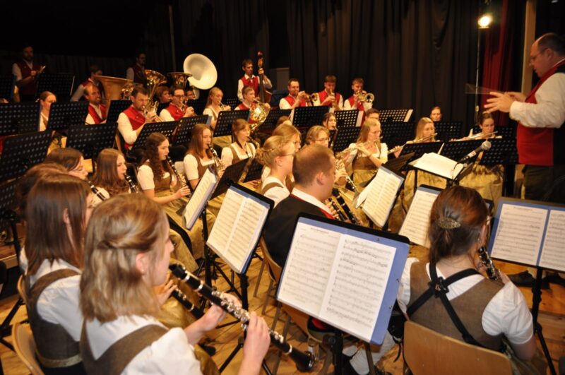 Gleich zu Beginn wurde das Neujahrskonzert schwungvoll von der Jugendkapelle mit dem Marsch „Standing Ovations“ eröffnet. Unter der Leitung von Tobias Huber zeigten die Jungmusiker mit der „Emoji Polka“ und dem „Farmhouse Rock“ ihr Können.