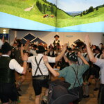 Nächster Höhepunkt war am Samstag der Besuch der Grünen Woche auf dem Messegelände. Hier hatte zunächst jeder Reiseteilnehmer Gelegenheit, die von der ganzen Welt kommenden Aussteller seines Interesses zu besuchen. Eindrucksvoll präsentierten sich dann nachmittags die Trachtenblaskapelle Ramsau und die Trachtenvereine Reichertsheim und Aschau in der Bayernhalle mit feinster Blasmusik und bayerischem Brauchtum. Dicht gedrängt und beeindruckt vom hohen musikalischen Niveau der Ramsauer Blaskapelle scharten sich die Messebesucher um das Podium und lauschten aufmerksam den bayerischen und böhmischen Klängen, welche die Musikanten unter der Stabführung von Josef Zeiler von der Bühne in die Halle zauberten.