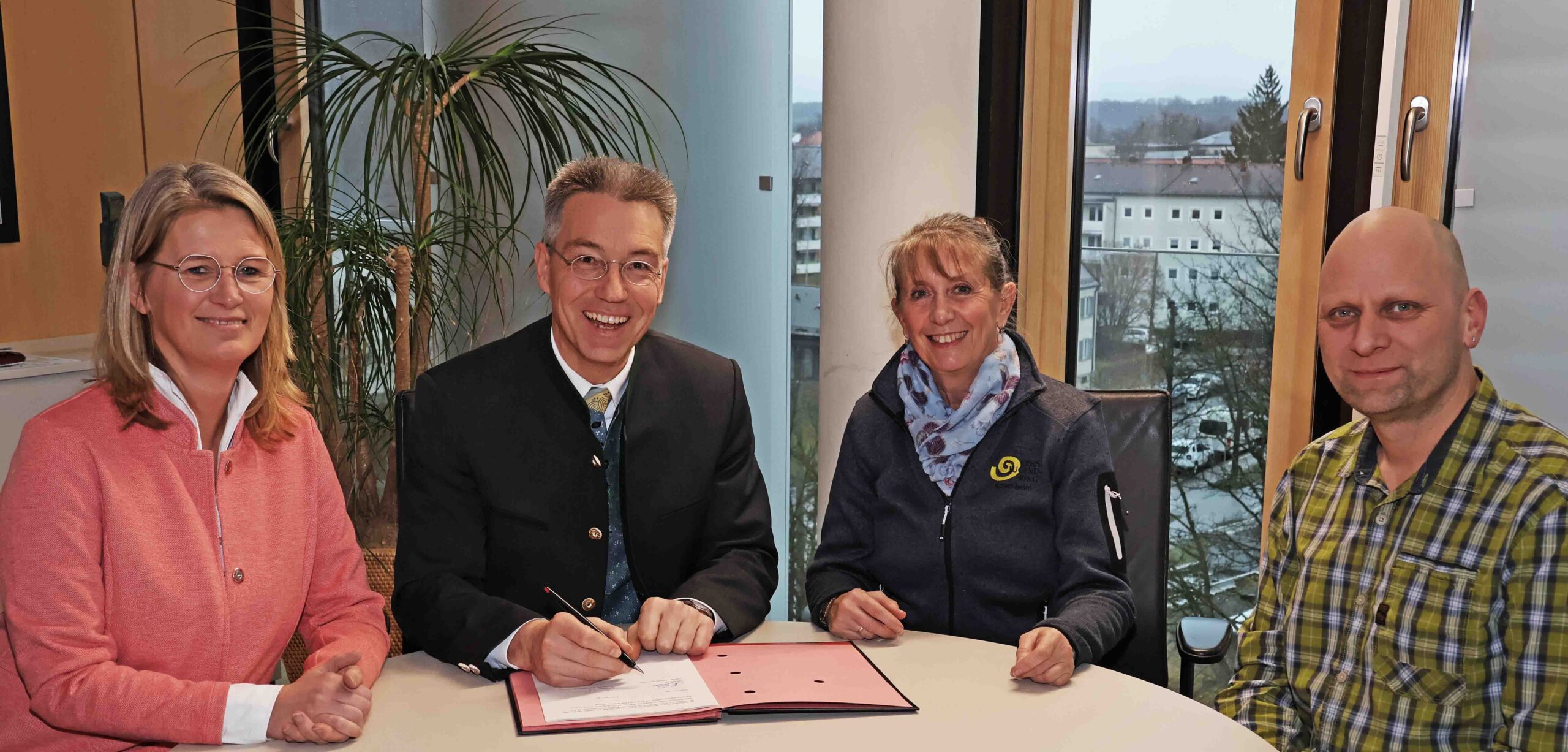 Landrat Otto Lederer, Kreisjugendamtsleiterin Sabine Stelzmann sowie Erika Spohn, Vorsitzende des Kreisjugendrings Rosenheim, haben beide Vereinbarungen im Landratsamt unterzeichnet.