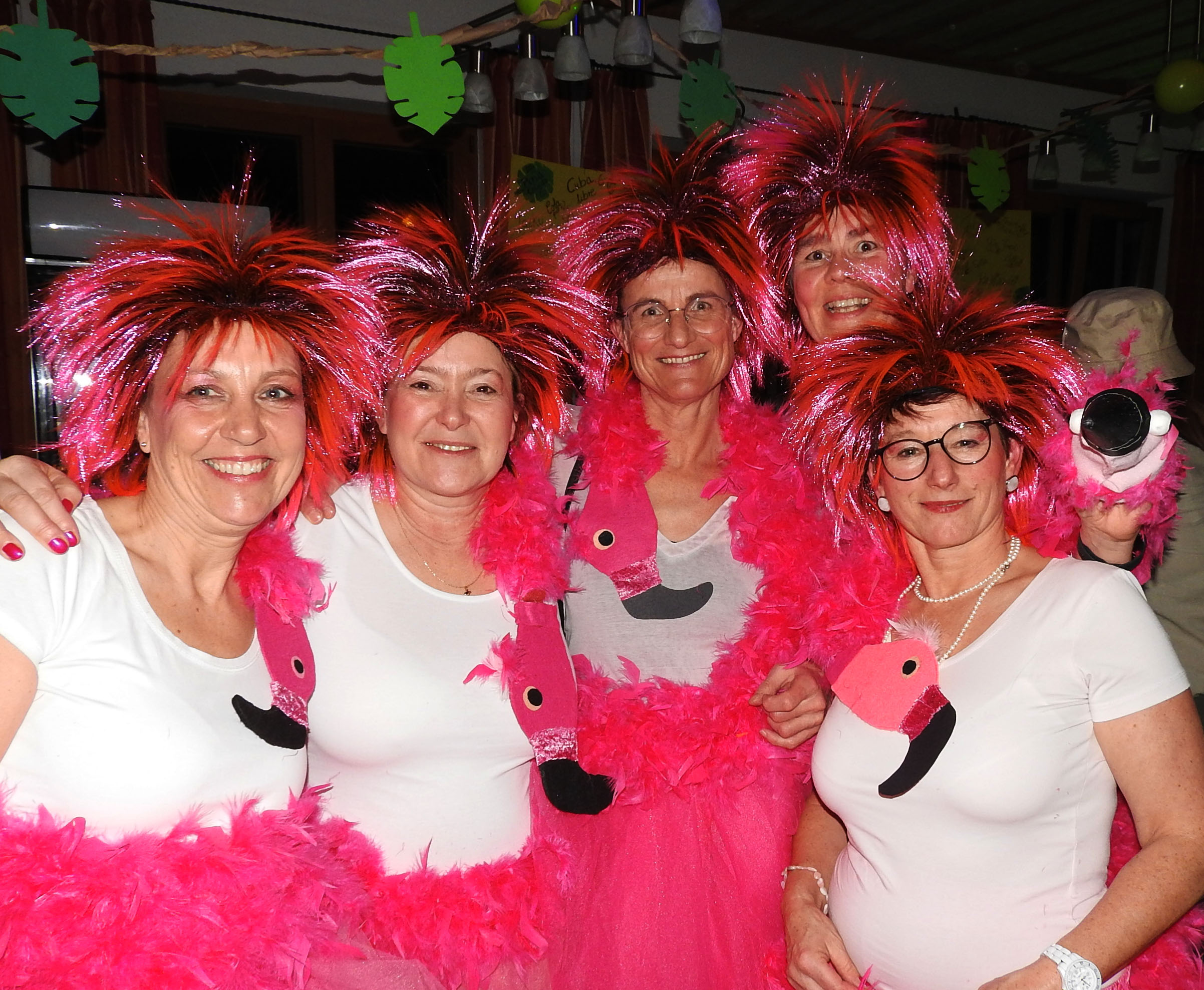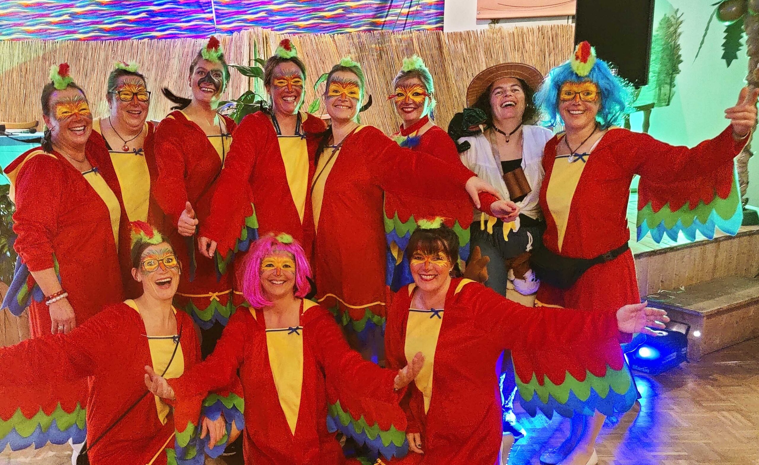 Viel Lob für sie: Als originelle Papageien verkleidet – passend zur Dschungel-Bar – steckte ihre Freude so wunderbar an. Das Organisations-Team der Pfaffinger Frauen Gemeinschaft (Foto) begeisterte mit Faschingskranzl und anschließendem Weiberfasching. Die Hände zum Himmel – und lasst uns fröhlich sein!