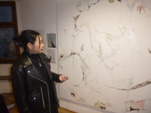 Eine Studentin der Bildenden Kunst, Kimo (Titelbild), sie stammt aus Südkorea, fasste es im Gespräch mit der Wasserburger Stimme so zusammen: Sie suche ihren Platz in der Gesellschaft und damit auch den Platz für ihr künstlerisches Schaffen. Und in dem Raum, in dem sie ausstelle, hoffe sie, diesen Raum zu finden.