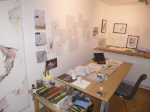 Im Untergeschoss des Ganserhauses steht der große Ateliertisch, an dem alle Künstler zusammenkommen und sich über ihr künstlerisches Schaffen austauschen können. Damit ist das Atelier der Schritt, mit dem der Künstler vom Einzelgänger oder Eigenbrötler zum solidarischen Wesen mutiert und dabei dann doch Individuum, Einzelgänger bleibt.