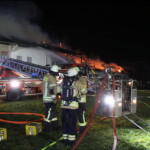Meldungen vom Einsatzort nach griff das Feuer, das gegen 2.30 Uhr ausgebrochen war, auch auf den Dachstuhl des Wohnhauses über. Das Gebäude ist unbewohnbar, teilte die Polizei mit. Ein großes Stallgebäude wurde komplett zerstört. Insgesamt beträgt der Sachschaden wohl rund zwei Millionen Euro, so die Polizei. Die Brandursache ist noch unklar. Polizeibericht folgt.