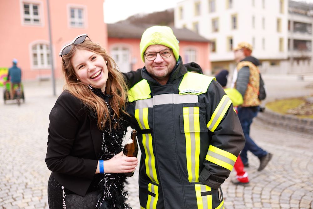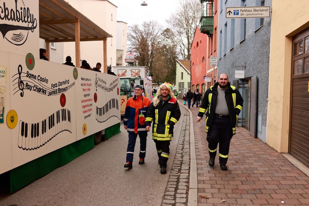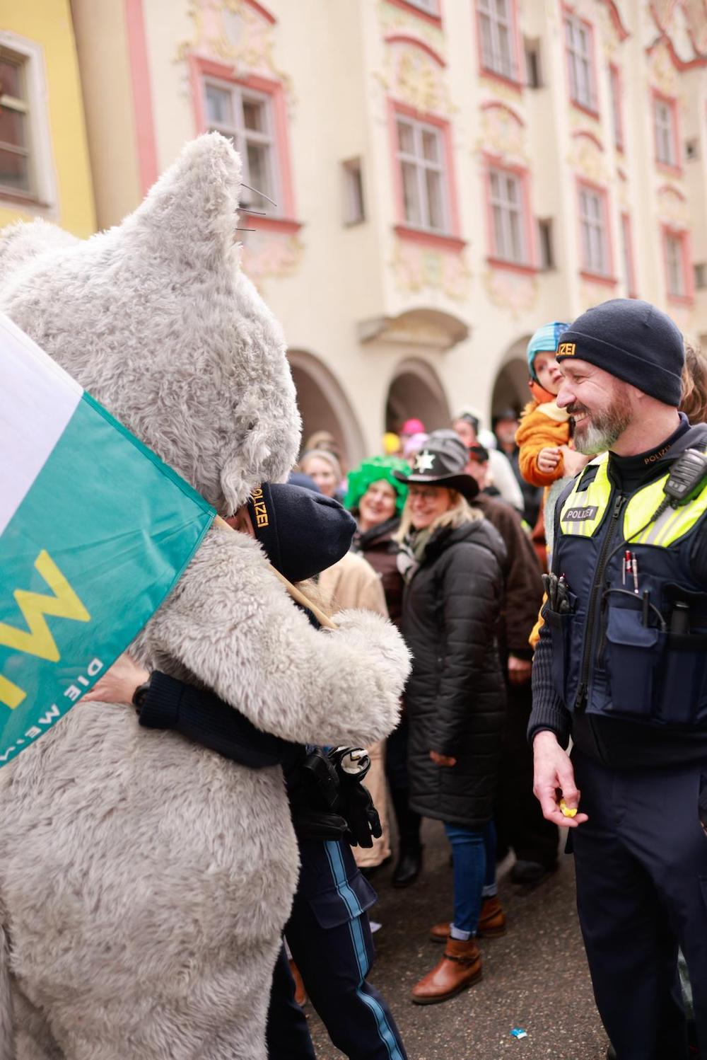 Polizei und Feuerwehr beweisen beim Faschingszug in Wasserburg viel Humor