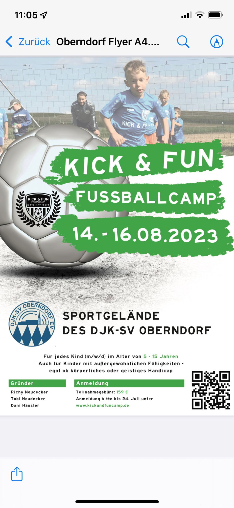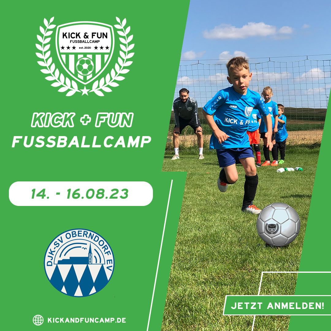 Schon jetzt sich anmelden: Die Fußballer im DJK-SV Oberndorf laden den Nachwuchs heuer im Sommer zu einem „Kick and Fun Fussballcamp“ auf das Sportgelände in Oberndorf ein. Und zwar vom 14. bis 16. August. Alle fußball-begeisterten Kinder im Alter zwischen fünf und 15 Jahren sind herzlichst willlkommen.