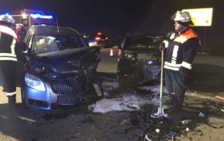 Zwei Pkw bei Stephanskirchen zusammengeprallt - Feuerwehr Evenhausen, Rettungsdienst und Polizei im Einsatz