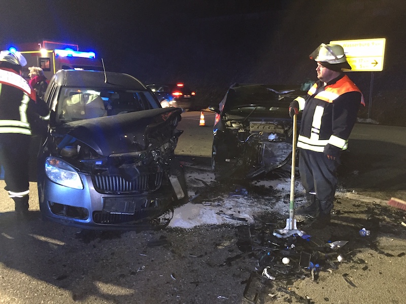 Unfall auf der Staatsstraße zwischen Wasserburg und Rosenheim - Zwei Pkw verwickelt