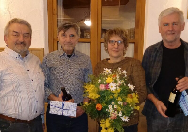 Der alte und neue Vorsitzende, Dr. Heinz Utschig (links) bedankt sich hier bei den scheidenden Vorstandsmitgliedern – Nik Liebhart, Uli Angelsperger-Maier und bei dem nach 26 Jahren ausscheidenden Gerd Schex (rechts im Bild).