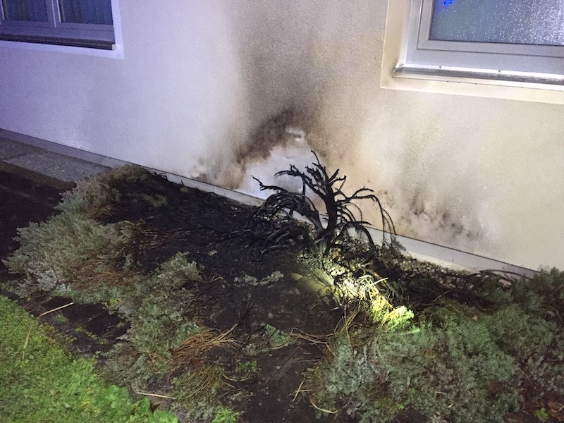 Die Hauswand wurde durch den Brand nur leicht in Mitleidenschaft bezogen. Der Sachschaden befindet sich wohl im niedrigen vierstelligen Bereich.