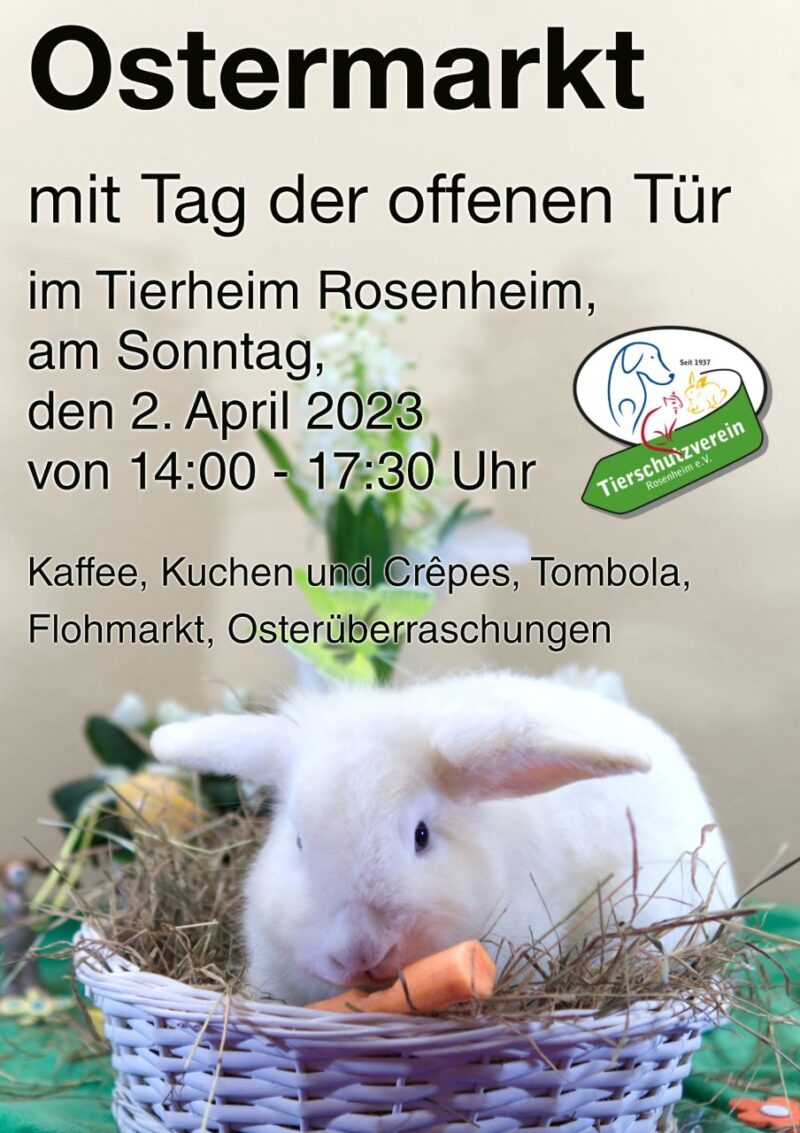 Am nächsten Sonntag, 2. April, findet von 14 bis 17.30 Uhr ein Ostermarkt mit Tag der offenen Tür im Rosenheimer Tierheim am Gangsteig 54 statt.
