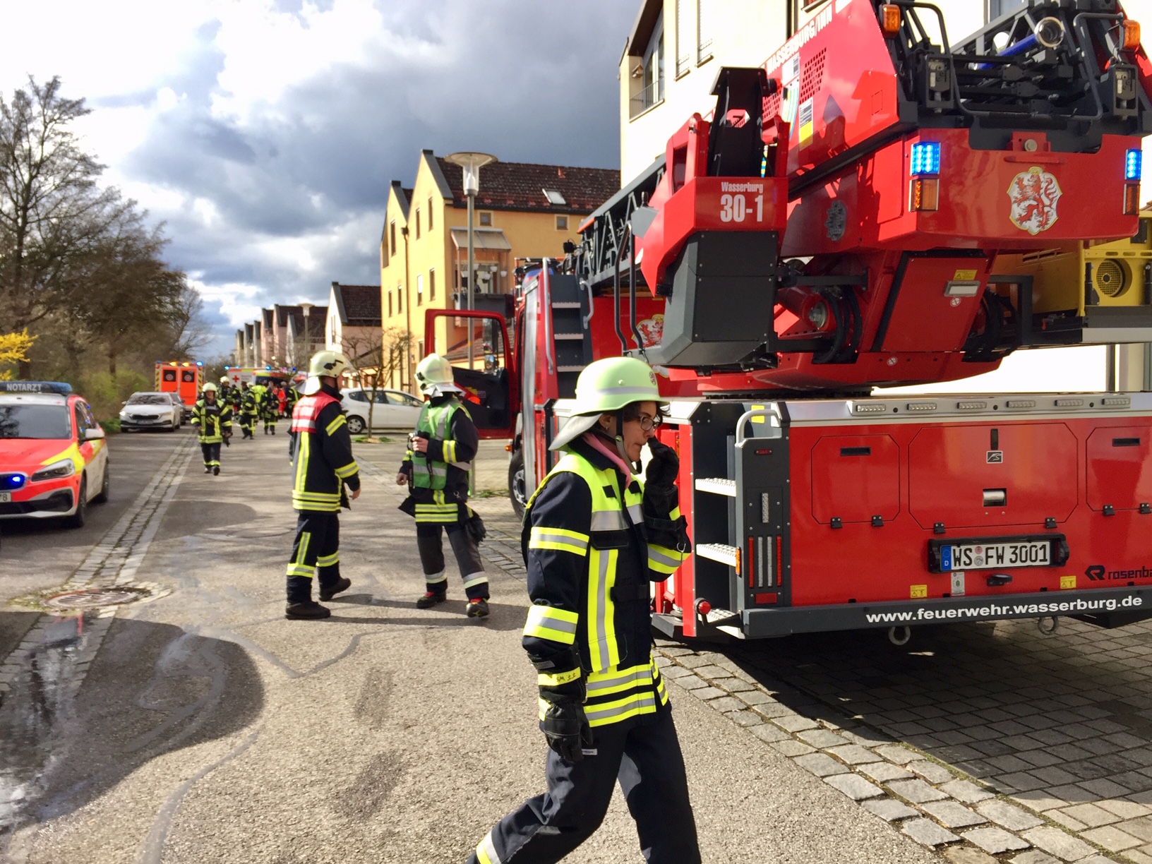 Vor Ort befanden sich rund 30 Einsatzkräfte mit sechs Fahrzeugen der Feuerwehr Wasserburg, des Rettungsdienstes und der Polizei.