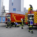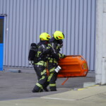 In sogenannten CSAs (Chemikalienschutzanzug) verschafften sich die ausgebildeten Einsatzkräfte Zutritt und retteten zwei Übungspuppen aus den Lager-Räumlichkeiten. Sowohl Übungspuppen als auch Einsatzkräfte im CSA mussten anschließend bei einem eigens eingerichteten Dekontaminationsplatz gereinigt werden.