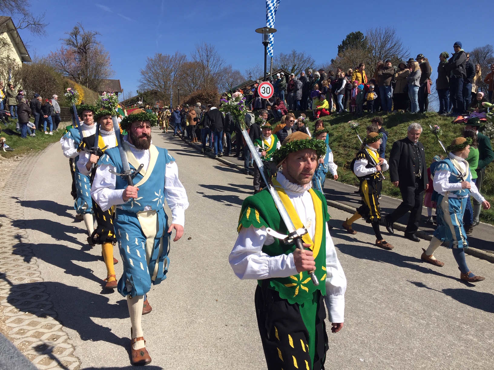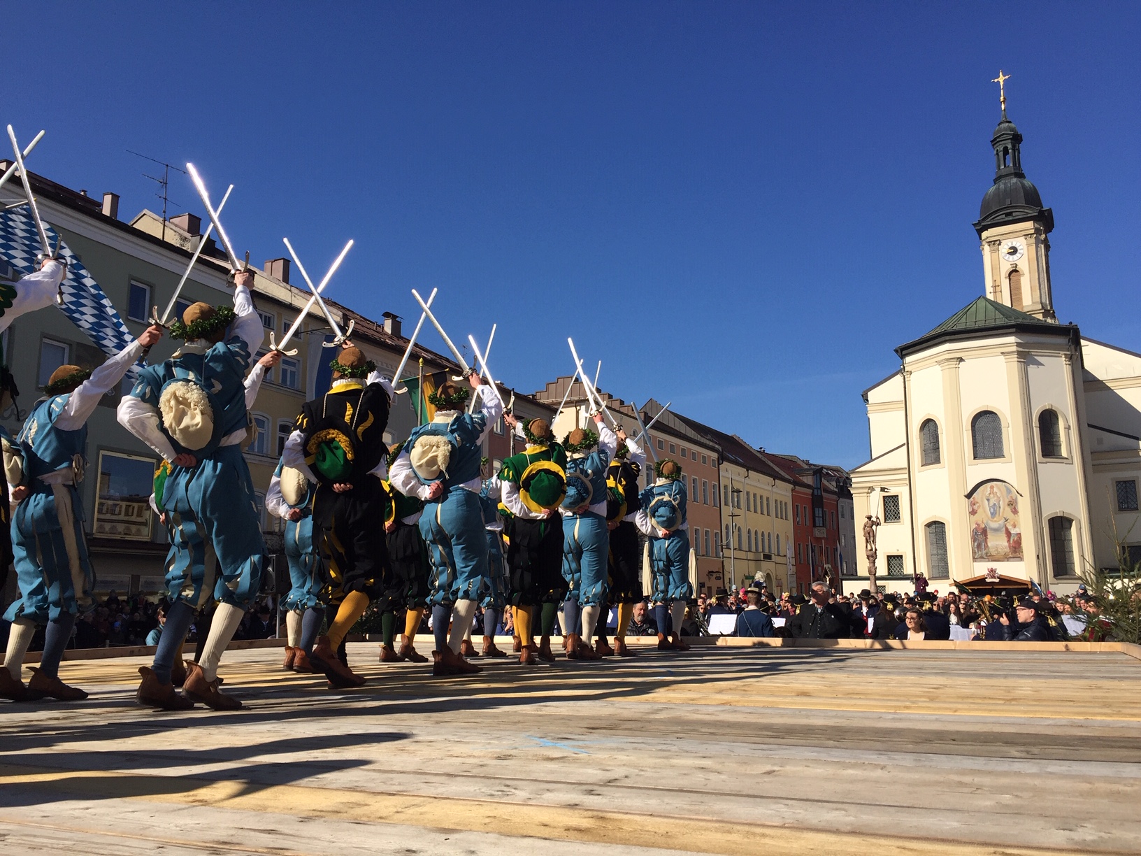 Zum Georgiritt gibt es in Traunstein stets einen weiteren Höhepunkt: Den historischen Schwertertanz. Er steht für den Sieg des Frühlings über den Winter.