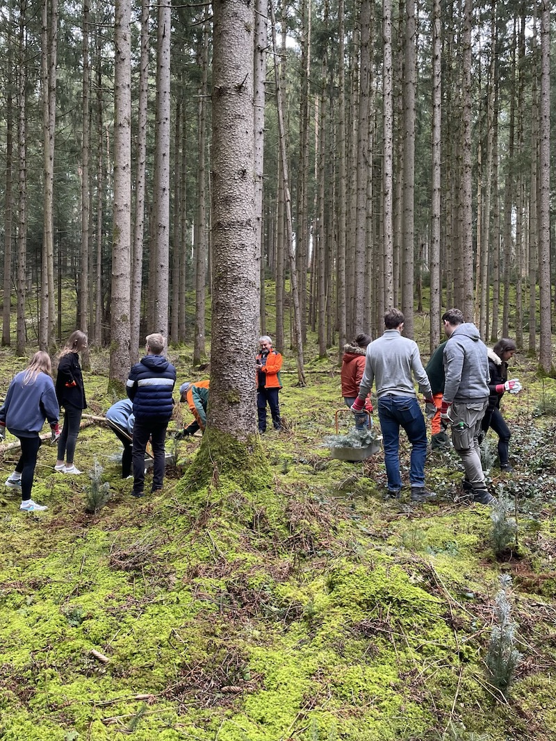 Auch Andreas Bonholzer, Vorstandsmitglied der Sparkasse Wasserburg machte sich vor Ort eine Bild und bedankte sich bei den Bayerischen Staatsforsten sowie den engagierten Azubis für den Einsatz und die unkomplizierte Umsetzung der zweiten Pflanzaktion. Gerne unterstützt die Sparkasse Wasserburg die Aufforstung mit 3.000 Euro und freut sich über die weitere Zusammenarbeit mit den Bayerischen Staatsforsten.